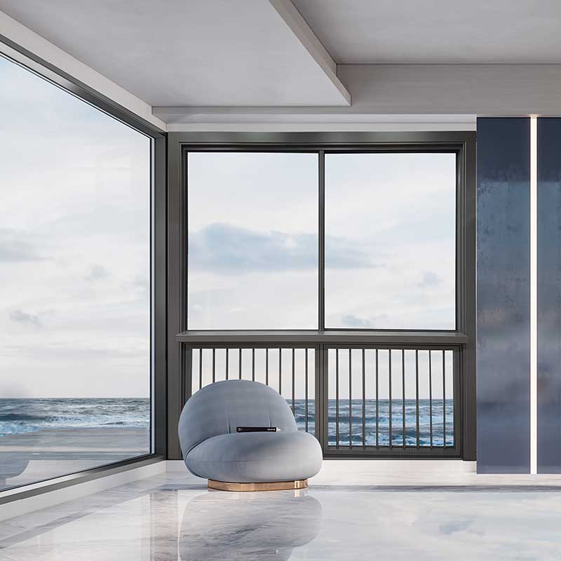As janelas apresentam um design de rebaixamento de via dupla, evitando vazamento e refluxo de água, com juntas sobrepostas em toda a superfície e configuração de lã de silicone para cobertura abrangente. As opções de vidro padrão incluem vidro isolante 5+12A+5 para janelas que podem ser abertas e 5+15A+5 para vidro fixo, criando uma zona de isolamento acústico eficaz.