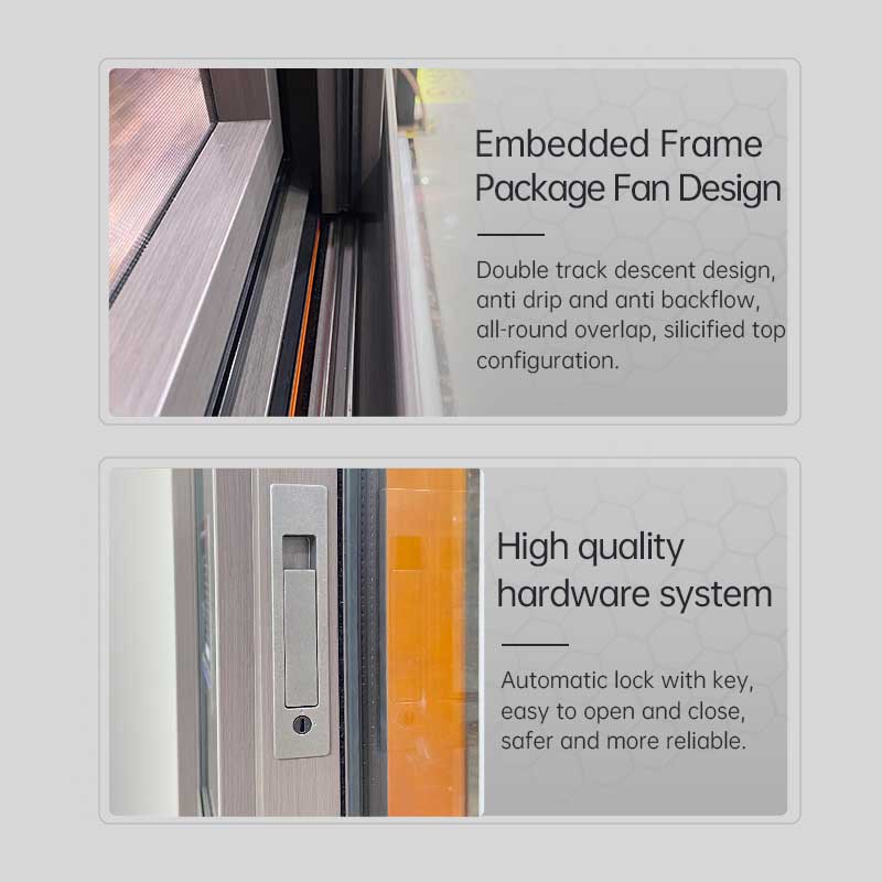 Utilizando tiras de borracha EPDM de alta qualidade para vedação, são usadas tiras de espuma de borracha coextrudada macia e dura de alta qualidade com monômero triplo de etileno propileno dieno (EPDM), garantindo resistência ao envelhecimento e não deformação. O design da superfície isotérmica, a barreira térmica de nylon padrão e o isolamento acústico reforçado contribuem para a eficiência energética.